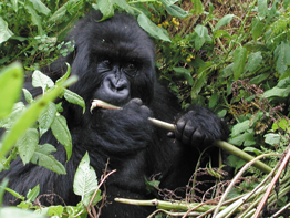 Once found you have an hour with them as they continue on with their daily routine - feeding (which they do for about 30% of the day), slowly moving and foraging which usually absorbs another 30% of the day and then for the rest of the time they sleep and sunbathe. Sometimes they are found in thick vegetation, perhaps in a bamboo stand. Other times a group might be found in a clearing, which is a very special privilege. Whilst every trek is different once found the guides will carefully push back the vegetation as much as possible without disturbing the gorillas to enable everyone in the group the best views.