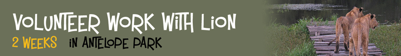 TWO WEEKS VOLUNTEERING WITH BIG CATS AT ANTELOPE PARK: The Lion Rehabilitation & Release into the Wild Program seeks to provide solutions to the problem of rapidly decreasing lion populations and is supported by the African Lion & Environmental Research Trust (ALERT), a non-profit organization dedicated to the conservation of the African lion.