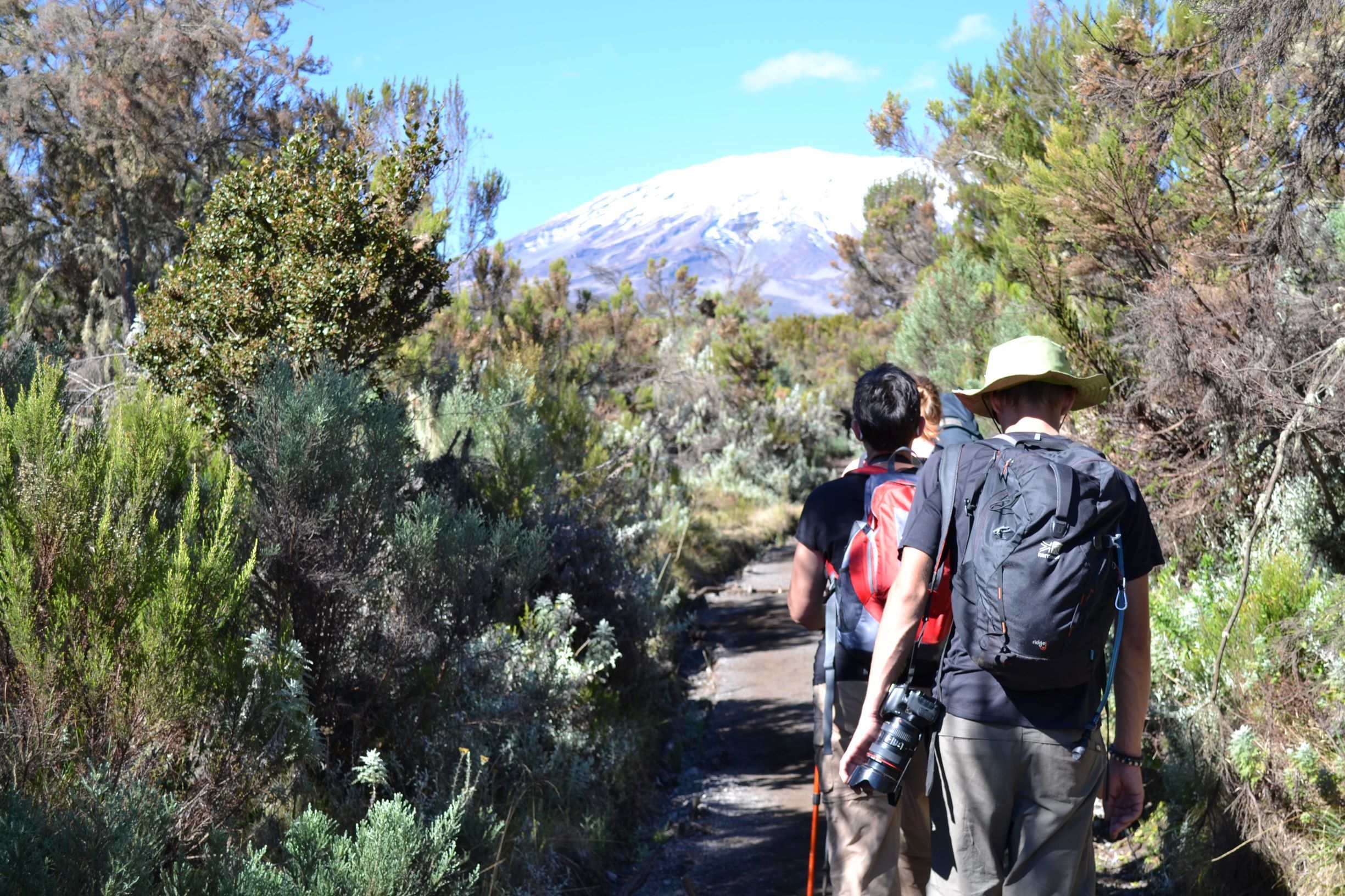 A steady descent takes us down through moorland to Mandara Hut (2,700m.), the first stopping place at the Marangu route. We then continue descending through lovely lush forest on a good path to the National Park gate at Marangu (1,830 m.). [5-6 hours walking]