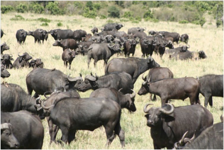 We will call this morning game drive “The lion experience”. We saw 2 young male bachelor lions 3 km from the camp site, 1 lioness with 5 cubs catching the early morning sun rays, a single lioness drinking water by a stream, 2 lionesses with a young male lion snoozing in the morning sun, a lone maned male lion lying in the sun oblivious to our big yellow truck, and a lone female eyeing off a herd of about 60 buffalo and 10 elephants from her termite mound.
