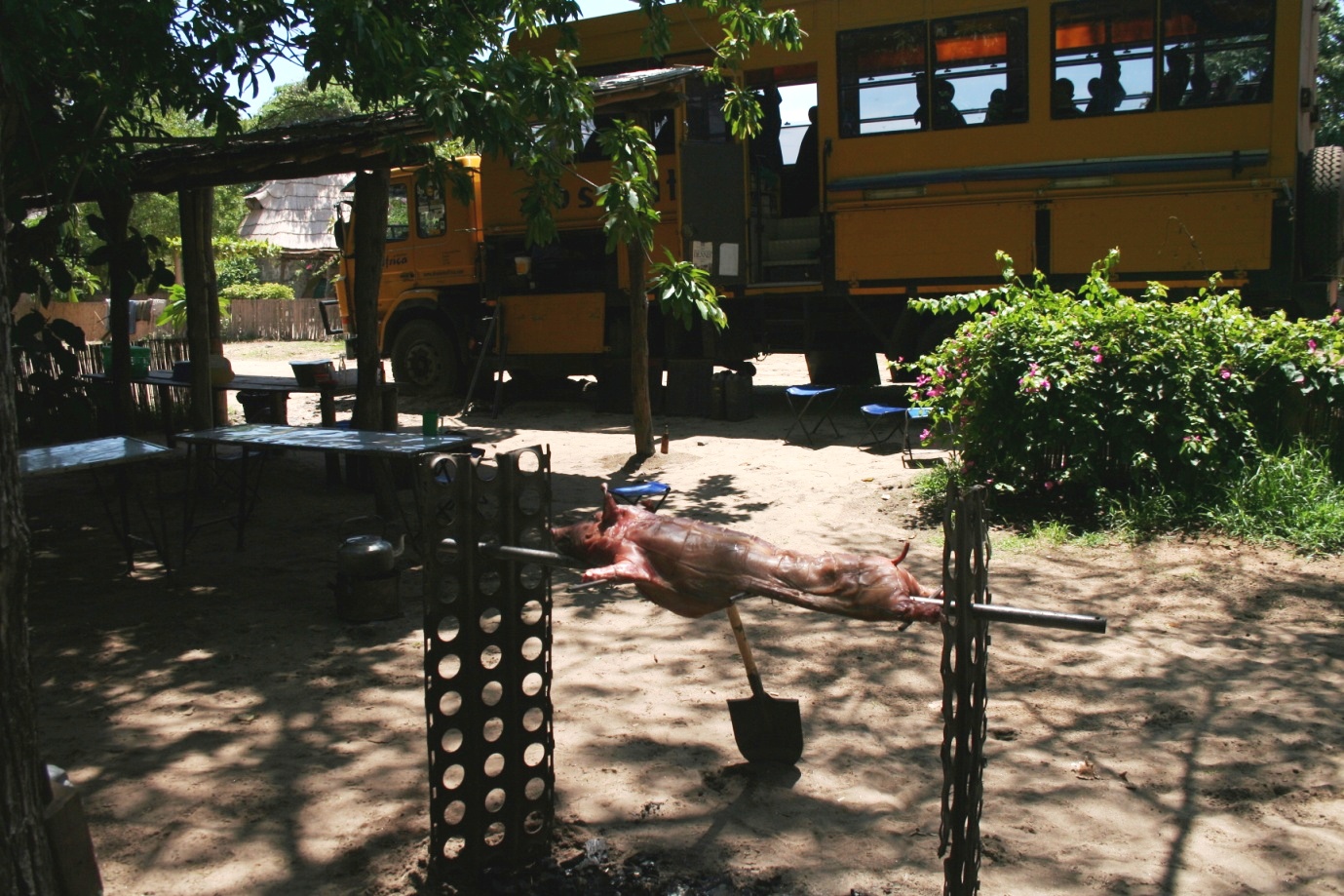 There are some parts of the trip that really takes the fancy of the ladies. For example shopping at curios and carving markets and massages on the beaches of Zanzibar. For the dudes, there is the rotation of a spit slowly roasting a beast with a cold beer in hand. Our beast in this case is a 6 month old pig. If it was just up to the blokes that would be enough to satisfy our hunger, but for the women there must be at least one accompanying salad! So after an 8 hour cooking extravaganza the beast is ready