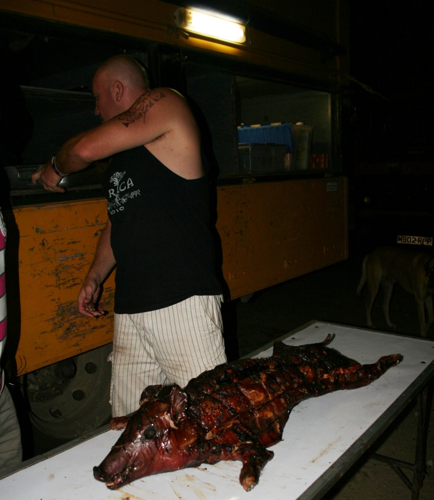for consumption. Do you know the greatest thing about eating a pig on the spit? It is okay to eat it like a caveman, all etiquette is thrown to the side and the feeding becomes primeval.