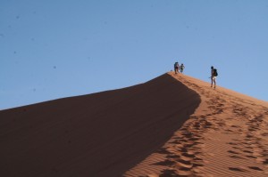 So what do we do here? We visit a Dead Pan. It is about 800 years old and has petrified Acacia trees still stuck in the white river bed completely surrounded by dunes. This are provides some sensational photographic opportunities. Then we climb Dune 45, it takes time to do this as the dune is over 200m high and it is damn hot in the summer months. But it’s well worth the effort for the views of this spectacular dunes system that you get at the top. The colours of the dunes change as the sun dips over their perfect edges. It is a day that is hot, uncomfortable, sweaty and exhausting. However this effort will provide you with some of the best photos of the trip. It is a fantastic and memorable place.