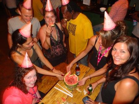 But there’s no rest because after rafting it was party time! Another birthday party, fancy dress, party hats and a vodka filled watermelon instead of a cake! We danced, sang and partied into the night, celebrating the birthday, the rafting and a great trip so far.