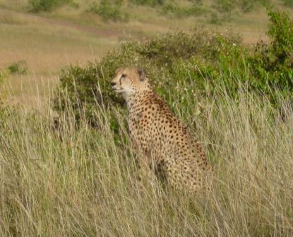 In the morning we drove off at sunrise to see what The Mara had in store for us. We saw giraffe, elephant, buffalo, topi, and herds of Thomson’s gazelle before stopping by the river to see hippo’s wallowing. After a long relaxing lunch we head out again for the afternoon drives. All of a sudden we saw a blur run fast out of the bush – cheetah chasing a reedbuck! Fast as lightening it ran across the road in front of the truck we all moved just as quick to catch a glimpse, and it turned quickly to cross back behind the truck and into the bushes. Quickly grabbing camera’s we scrambled to the other side of the truck to get a better view – unfortunately for the cheetah and the buck got away. The cheetah lay down exhausted in the bushes, all our hearts were beating fast with the excitement, what an end to our amazing game viewing on this trip!