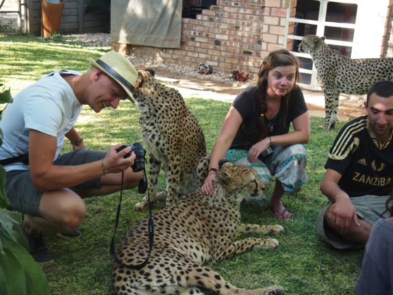 After the wonderful cheetah sighting in Etosha it was a total joy to meet the cheetahs at the Cheetah Park. The Park has four hand-reared cheetahs and 17 wild rescued cheetahs. We spent an hour playing with the cheetahs in the families back yard – before the owners took us out on the truck to feed the wild cheetahs. Another incredible experience for all!