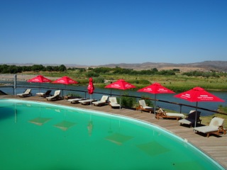Today we were continued further south and stopped within swimming distance of South Africa, literally, as we camped on the edge of the Orange River which marks the border between Namibia and South Africa.